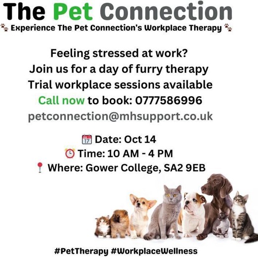 As a college brief for a PLA Graphic Design course I designed a series of Instagram promotional graphics for The Pet Connection’s Workplace Therapy Day. The brief was to create a set of engaging, social-media-optimised visuals that would promote an event, highlight booking details, and communicate the benefits of pet therapy in a clear, friendly, and approachable way.